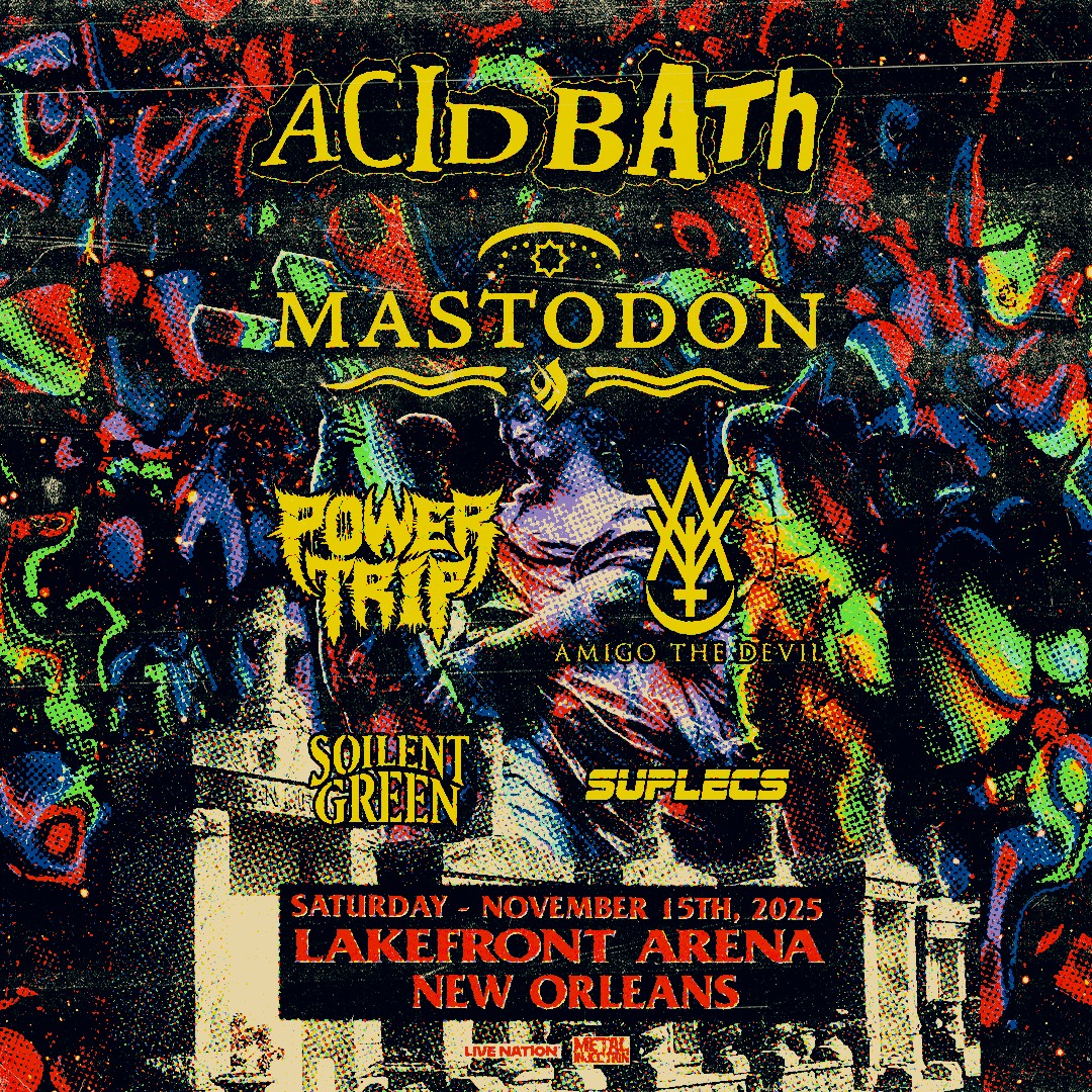 Acid Bath, Mastodon, Power Trip, Amigo The Devil, Soilent Green, and Suplecs will be joining forces for a massive show in New Orleans, LA. The concert will be held at UNO Lakefront Arena on November 15.