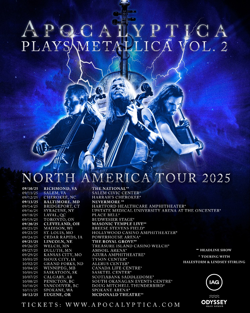 Those Finnish mad lads with cellos APOCALYPTICA are trading saunas for stadiums this autumn. You read that right – they’re dragging their apocalyptic cellos across North America for a whole month. Because who needs guitars when you’ve got four cellos, right?