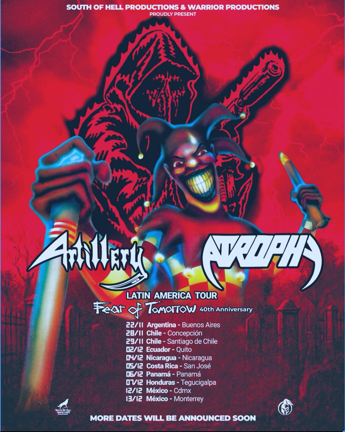 Danish thrashers Artillery have announced a Latin American tour in November and December of this year, which will see the band celebrating the 40th anniversary of their debut album Fear Of Tomorrow and joining them on the trek will be none other than American thrashers Atrophy. The announcement of this tour comes new material for their next album, and Artillery are reportedly working on new music as well.