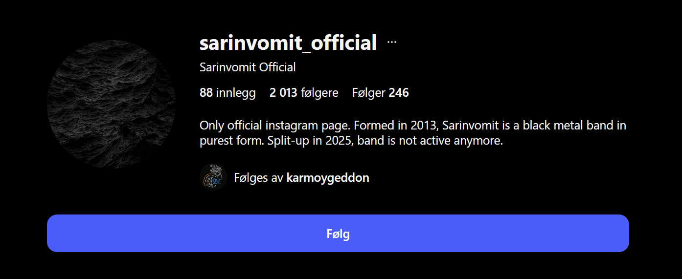 All Sarinvomit releases have vanished from Spotify, their Facebook page has been deleted, and their Instagram account now reads simply: