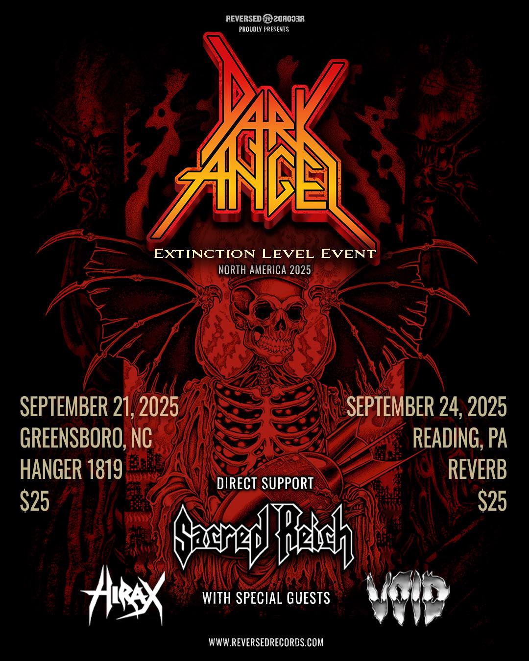 Both shows will feature the crushing lineup of Dark Angel, Sacred Reich, Hirax, and Void.