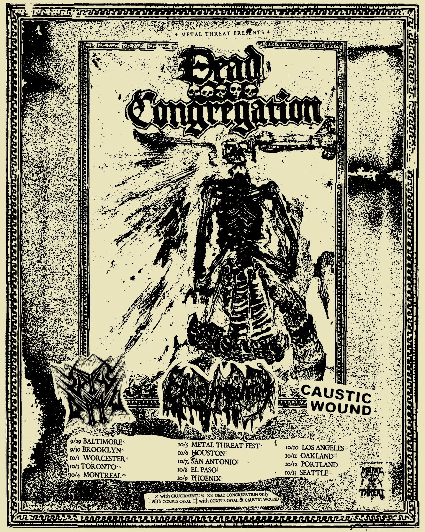 Greek death metal force Dead Congregation is excited to announce a 2-week long headline trek over the North American continent. On select shows they will be supported by Cruciamentum, Caustic Wound, Corpus Offal and Blasphematory.