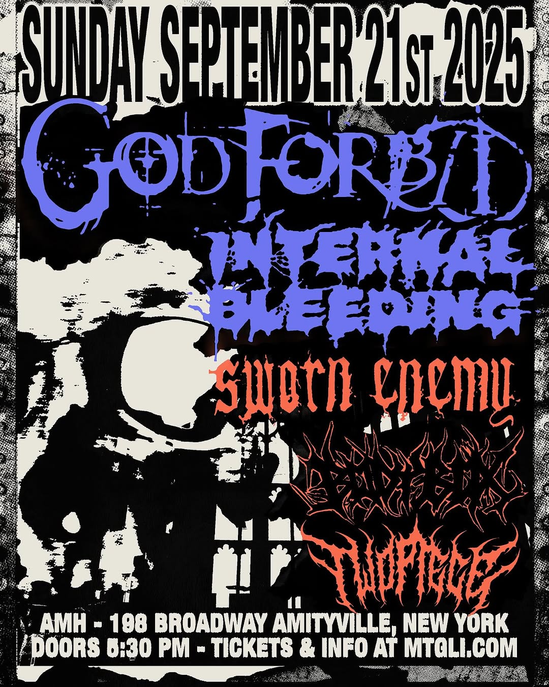 The show will be held at The Amityville Music Hall on September 21st with support being provided by Internal Bleeding, Sworn Enemy, Bodybox, and Two Piece.