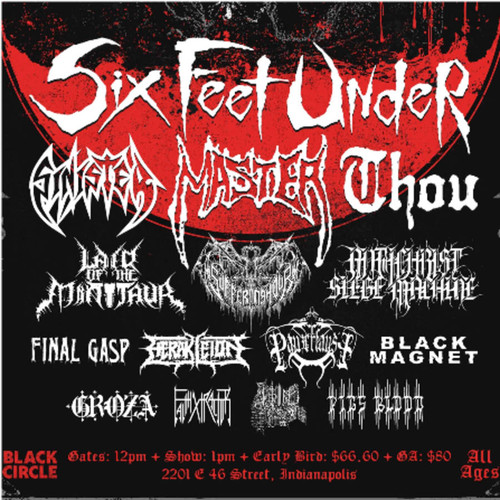 Death Metal legends SIX FEET UNDER will headline this year’s festival, along with Louisiana Sludge Kings THOU, Midwest Death/Thrash innovators MASTER, Dutch Death Metal tyrants SINISTER, War Metal mercenaries ANTICHRIST SIEGE MACHINE… a special set from Chicago’s recently reunited sludge/thrash maniacs LAIR OF THE MINOTAUR.