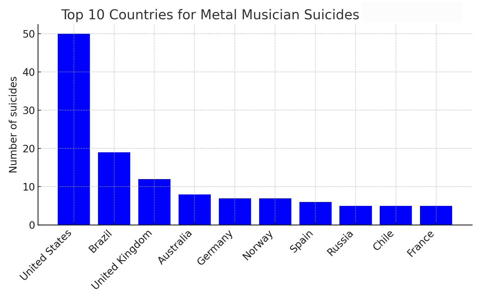 Suicide – 180 musicians, ≈10%.