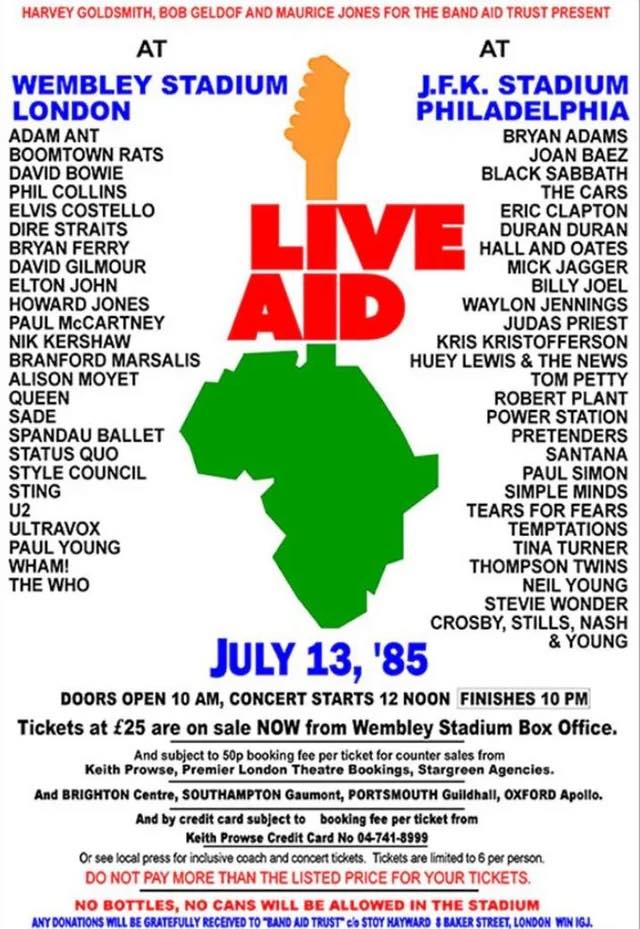 July 13, 1985 — the day the world tuned in, turned up the volume, and pretended rock music could solve world hunger. Live Aid, the legendary transatlantic benefit concert, is now officially middle-aged. Time flies when you’re feeding the planet one guitar solo at a time.
