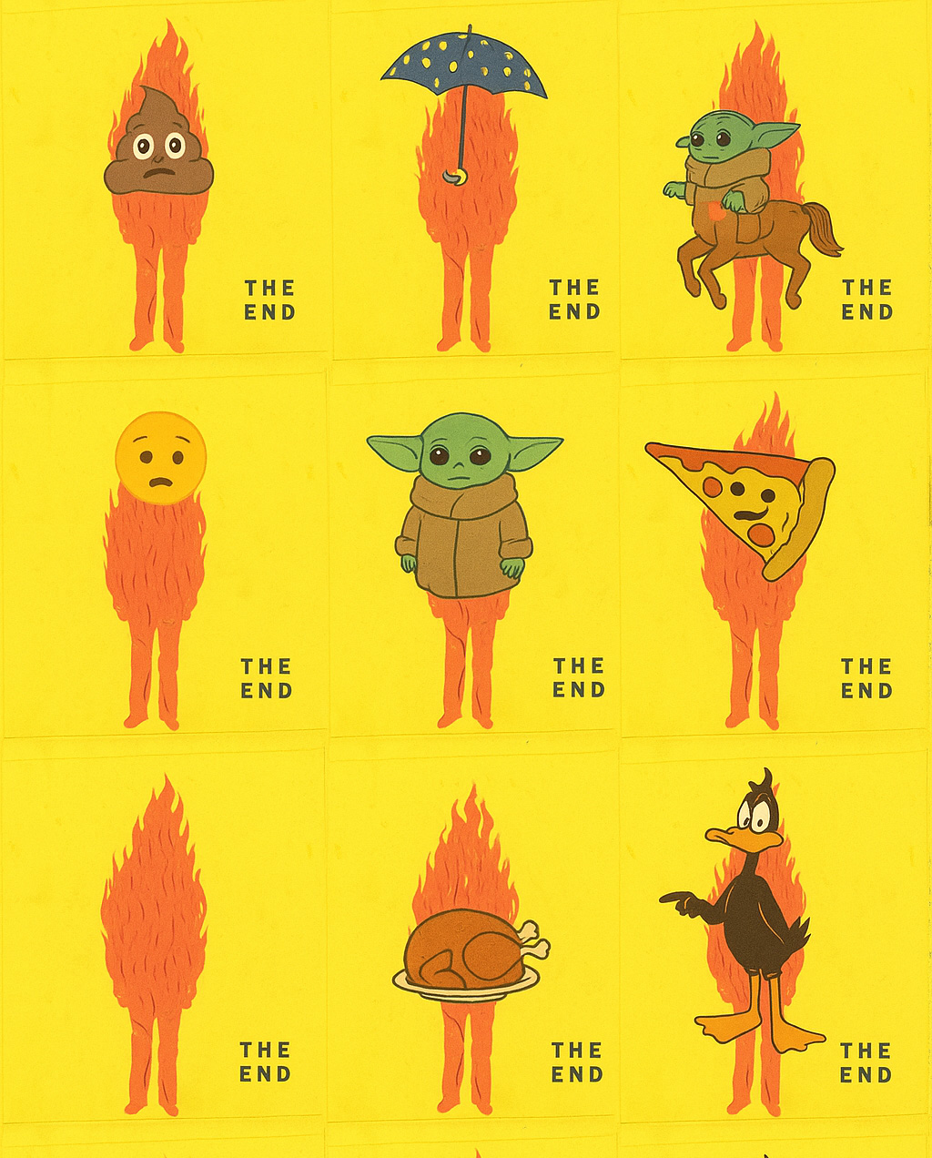 And what better way to say “this is the end” than with an album cover featuring a human figure completely engulfed in flames, standing proudly on a bold yellow background? It’s giving “spontaneous combustion meets minimalist merch design” and fans are here for it.