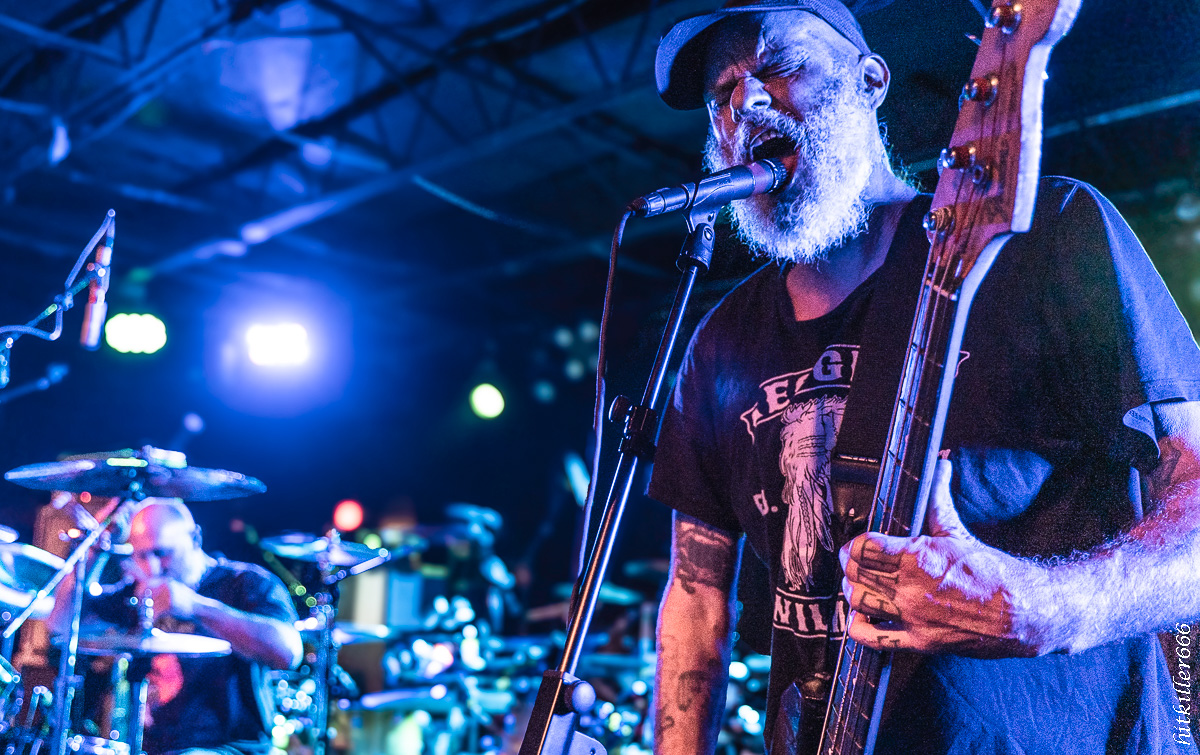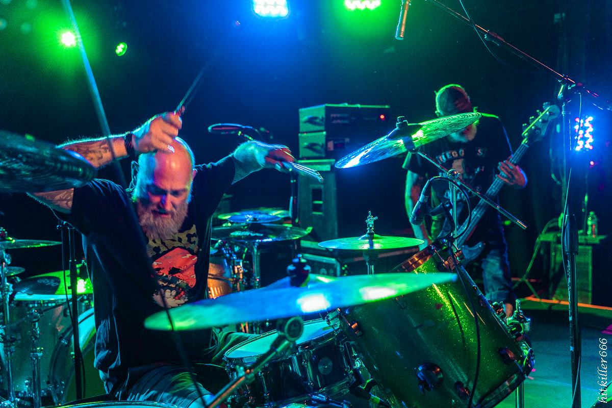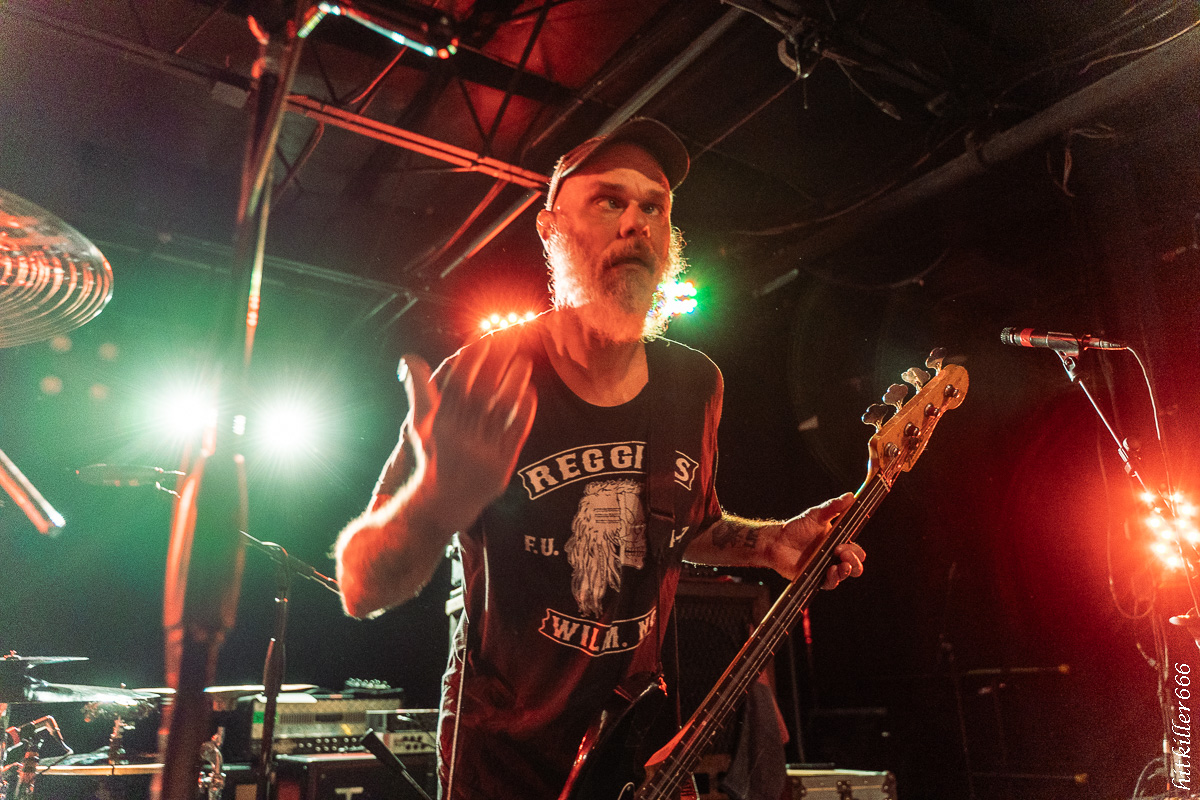 And since the promised esoterica and electronics didn’t materialize, WEEDEATER opened the evening. This band is pure legend in North Carolina — a state not exactly drowning in metal celebrities — hailing from the seaside town of Wilmington. Led by the one and only Dave “Dixie” Collins on bass and vocals (yes, that wild stoner from BONGZILLA and BUZZOV*EN — the guy who once fired a shotgun in a New Year’s “celebration,” passed out, came to, started cleaning the gun, and shot himself in the foot).