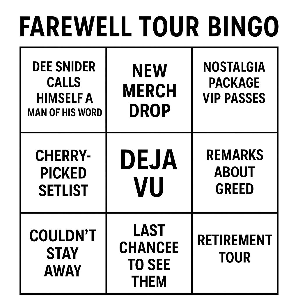 Yes, this is the same Dee Snider who, with full chest hair flying, once declared reunion tours to be total “bullshit.” He swore he was a “man of my word,” tired of bands signing blood contracts only to show up three years later with a new T-shirt design. Black Sabbath, Mötley Crüe—he called them all out. And now, he’s printing his own merch in the exact same font.