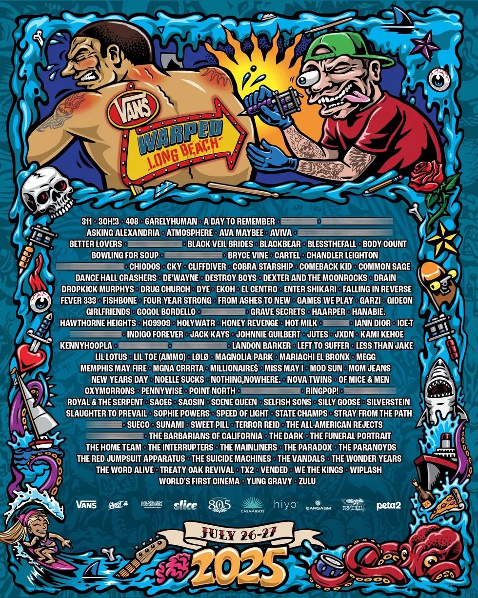 Here are the posters for the 2025 Warped Tour festivals in Washington, D.C.; Long Beach California; and Orlando, Florida.